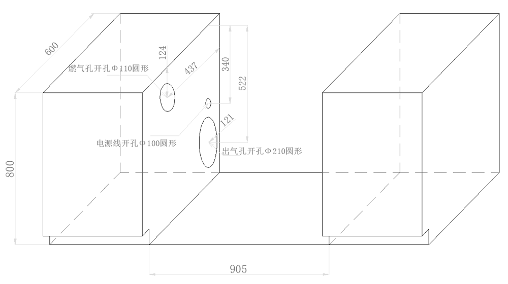 注:排氣管施工安裝圖,對應開孔尺寸以實際測量數據為準