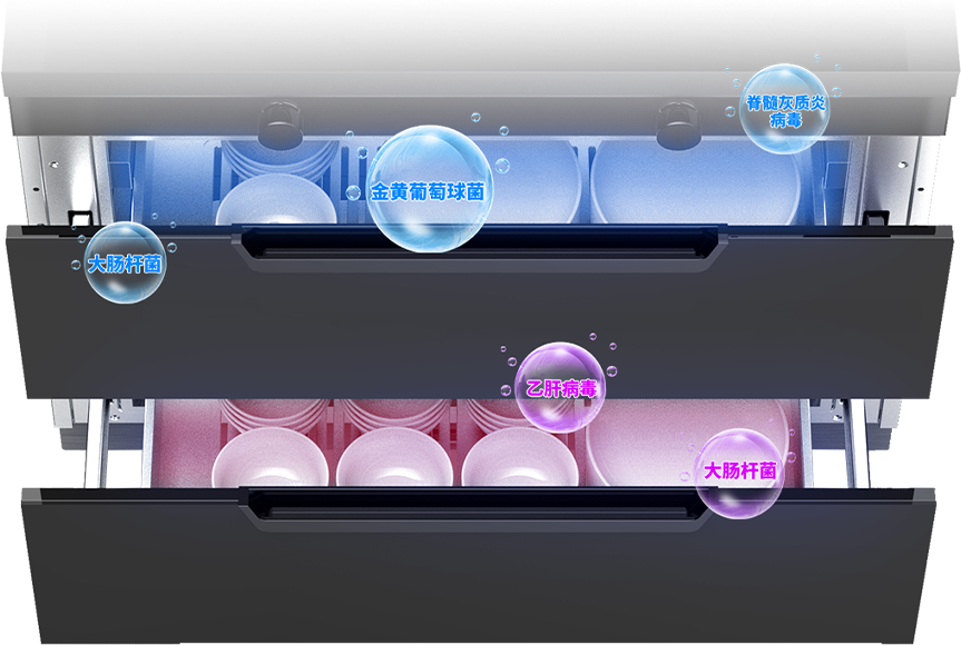 國家二星級(jí)認(rèn)證消毒柜,創(chuàng)新“2+1”消毒模式,紫外線、臭氧、高溫三重消毒